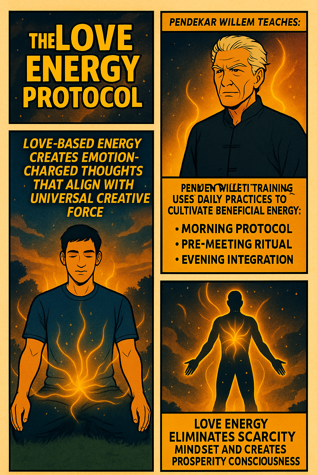 Pendakar Willem's advanced training included what he called "Latihan Kasih Sistematis" - systematic love energy development through specific daily practices: